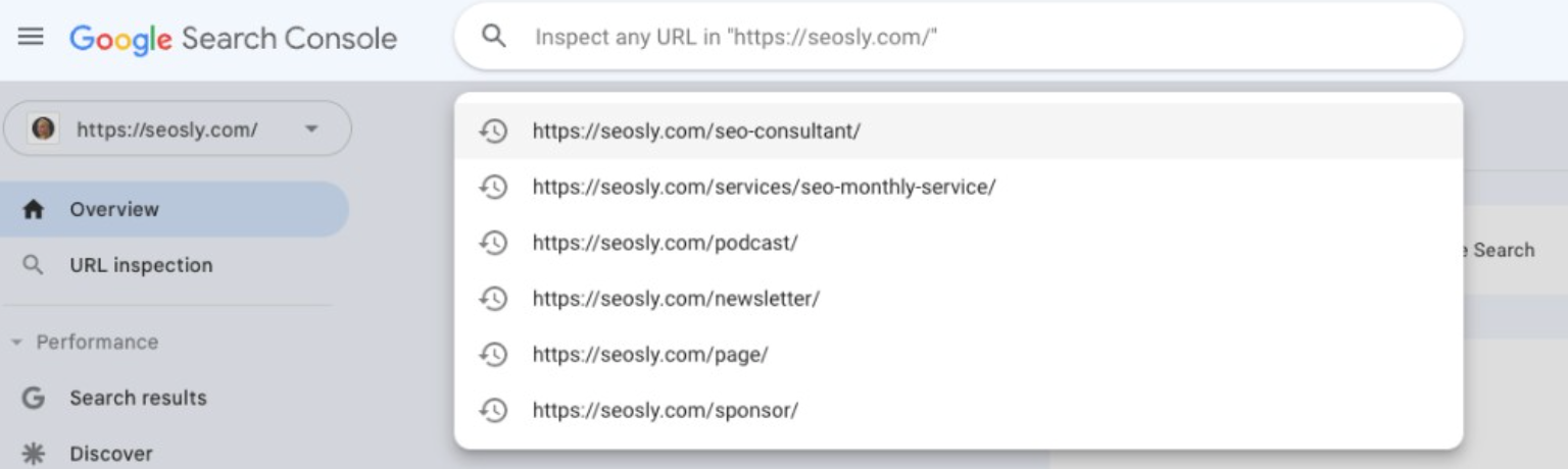 - 왼쪽 메뉴에서 'URL 검사' 도구를 찾습니다.